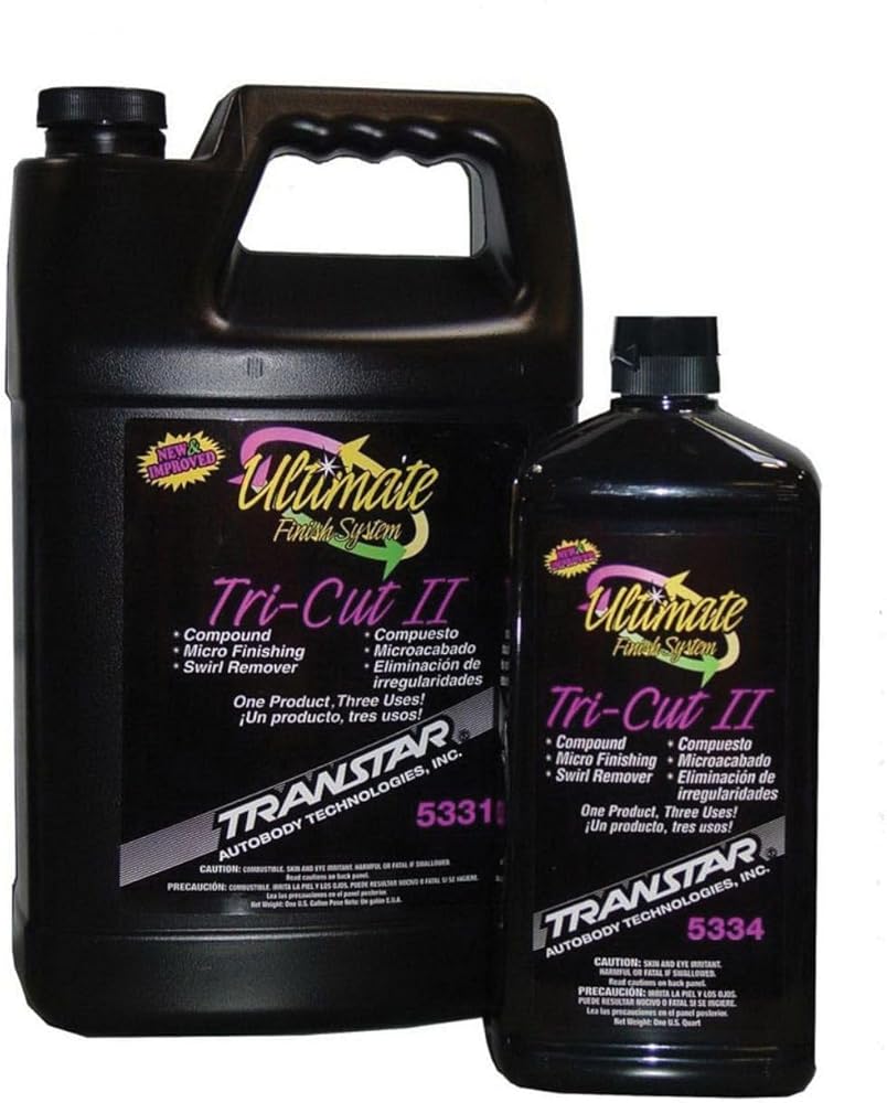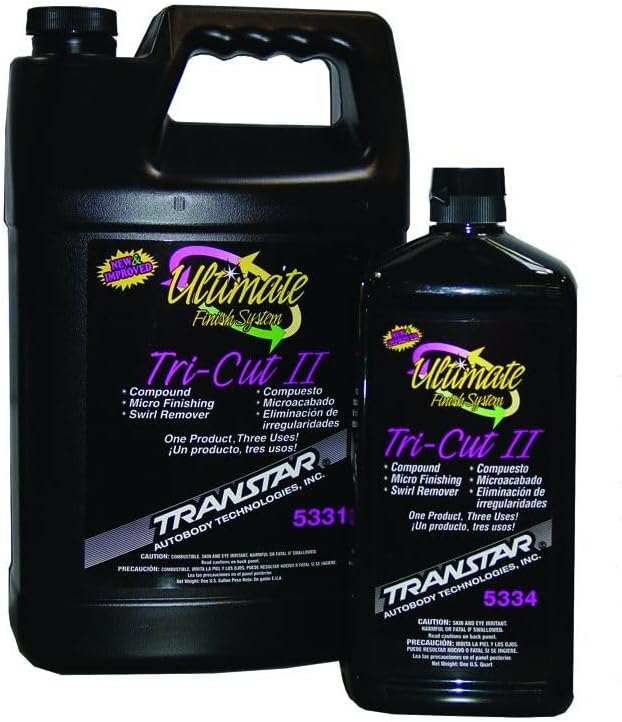 Ultimate Finish System Tri-Cut is designed to offer 1 product for three uses. 1) remove grade 1200 grit and finer sand scratches with a wool compounding pad #5200 and an air or electric buffer (1500-2000 RPM.), 2) for 1500 and finer imperfections use a Yellow Acrylic Polish Pad #5230 or Yellow Foam Medium Cut Pad #5240 at (1200-1750 RPM), and 3) finish to desired gloss with a Blue Foam Pad #5250 at (1000-1120 RPM?s). Safe for use on all paints.