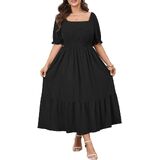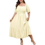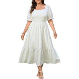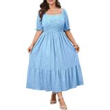 Features: casual summer dress for women 2026 / puff sleeve dress / eyelet dress for women / a line dress for women / square neck dress / maxi dress for curvy women/ long dress / embroidered dresses / elegant dress for women / hollow out dress / flowy dress / party dress / vacation dress