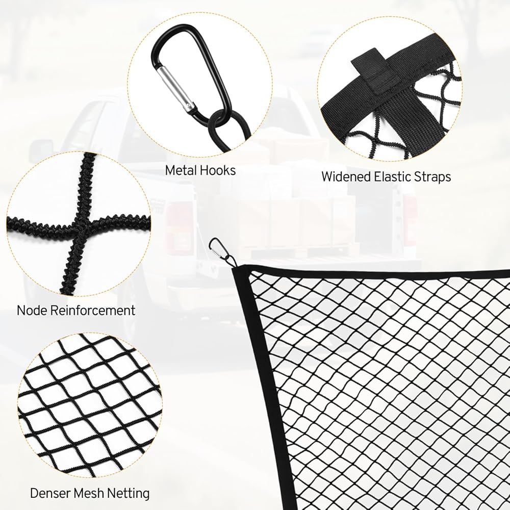 The trunk netting for cargo can start from a compact 32" x 24" and extend to 63"x43" .The risk of goods falling due to bumps or accidents during transport is reduced, minimizing the chance of cargo loss.