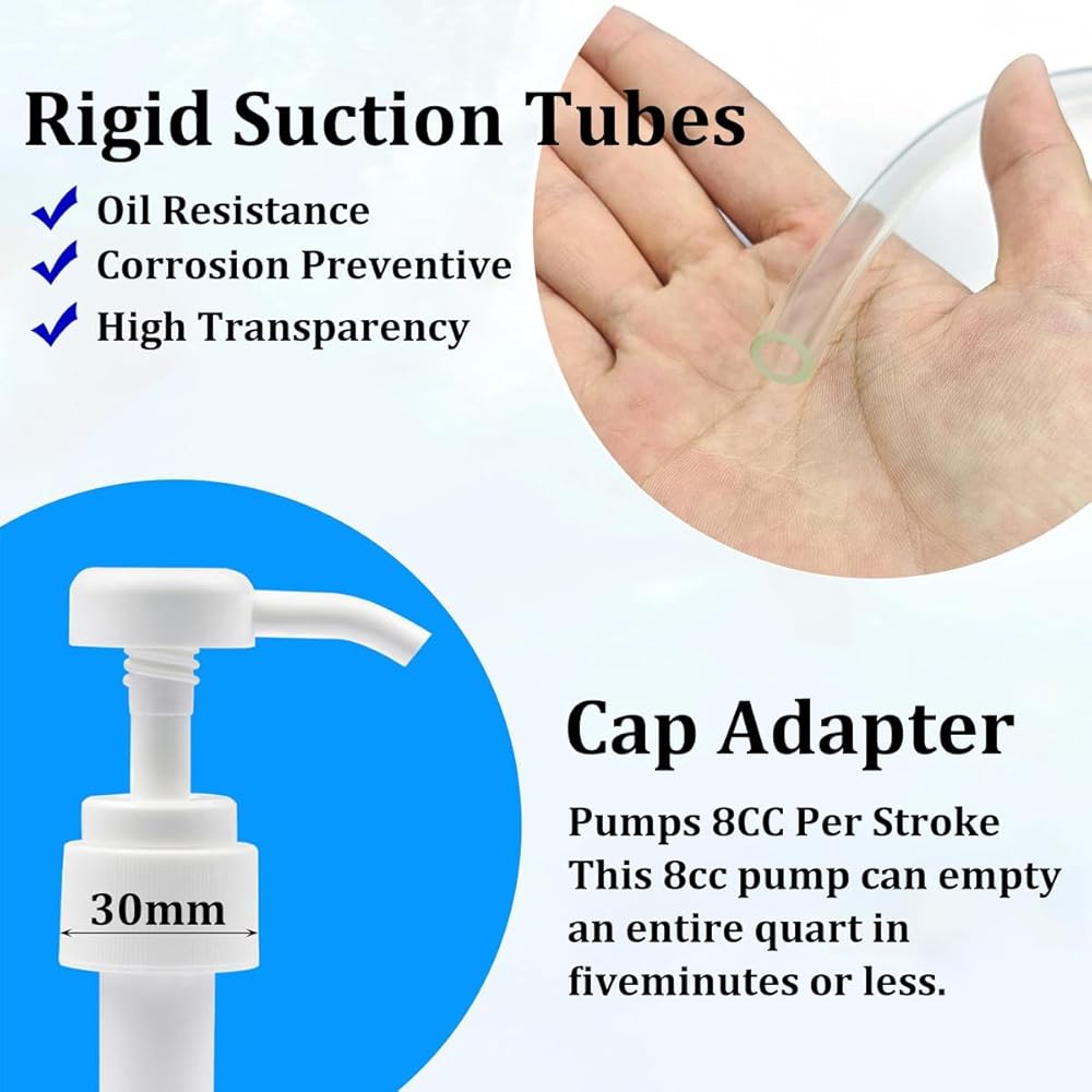 -2. Equipped with two suction tubes of different heights, this product allows flexible selection based on the height of the quart bottle, ensuring smooth and efficient fluid transfer.