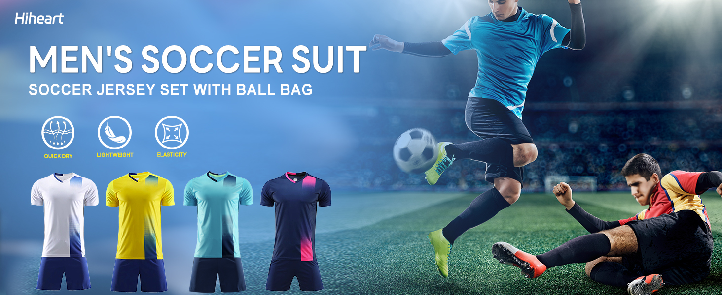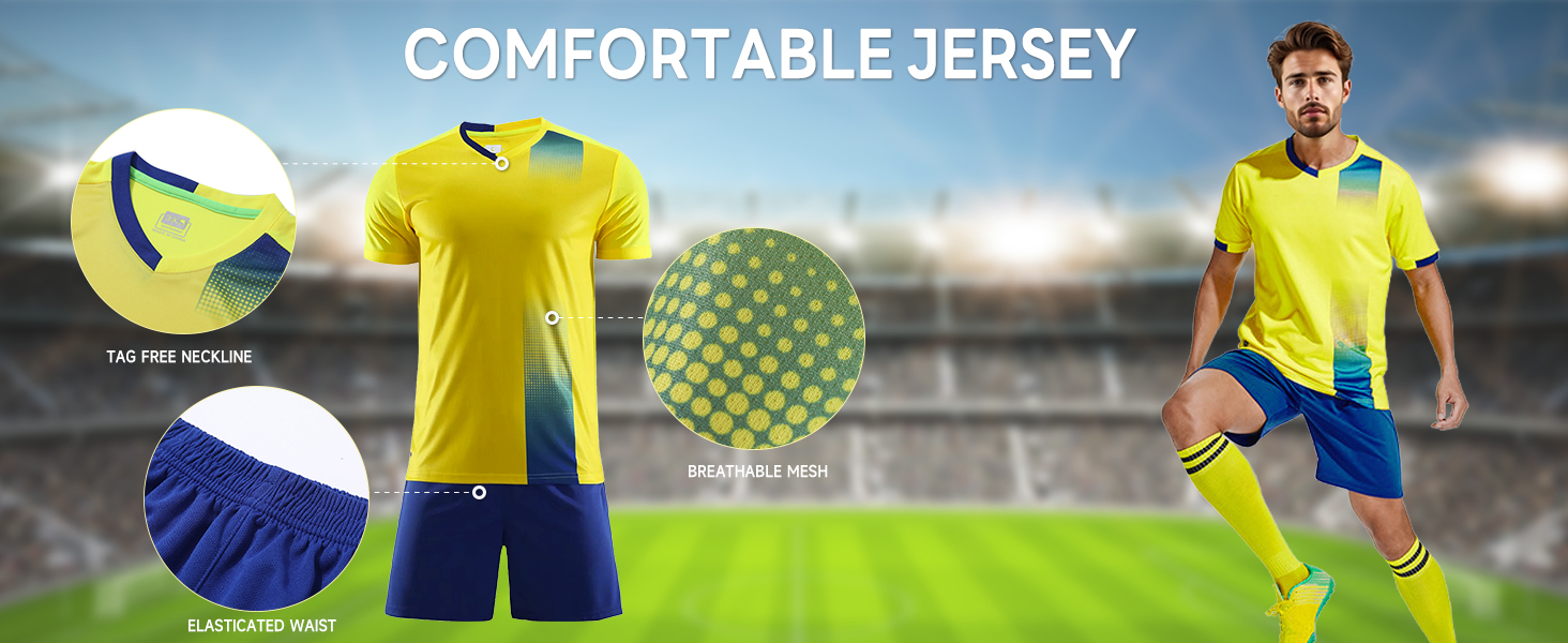 These mens soccer jersey and shorts sets are available in sizes S to XL. Elastic waistband and flat design ensure a snug, adjustable fit for all body types.