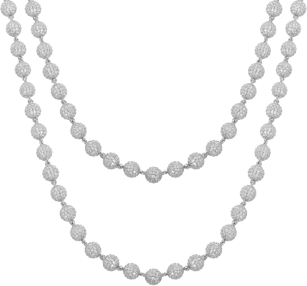 LuxeFlex 8mm Iced Out Round Beaded Chain for Men and Women, 14K Gold/White Gold Plated, 5A Zircon Luxury Bling Rapper Necklace, Diamond CZ Miami Hip Hop Jewelry