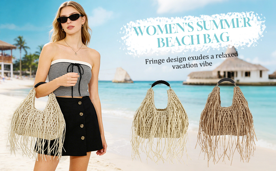 Tassel Design: The summer beach bag features an exaggerated long tassel hanging design, swaying lightly with each step, creating a lazy and relaxed vacation atmosphere. The simple bag shape paired with flowing tassels not only retains the rustic feel of the woven bag, but also adds a touch of fashion and agility, making it an excellent accessory for beach photography.
