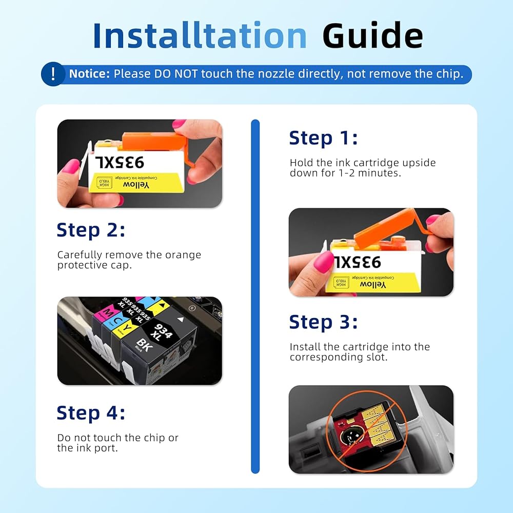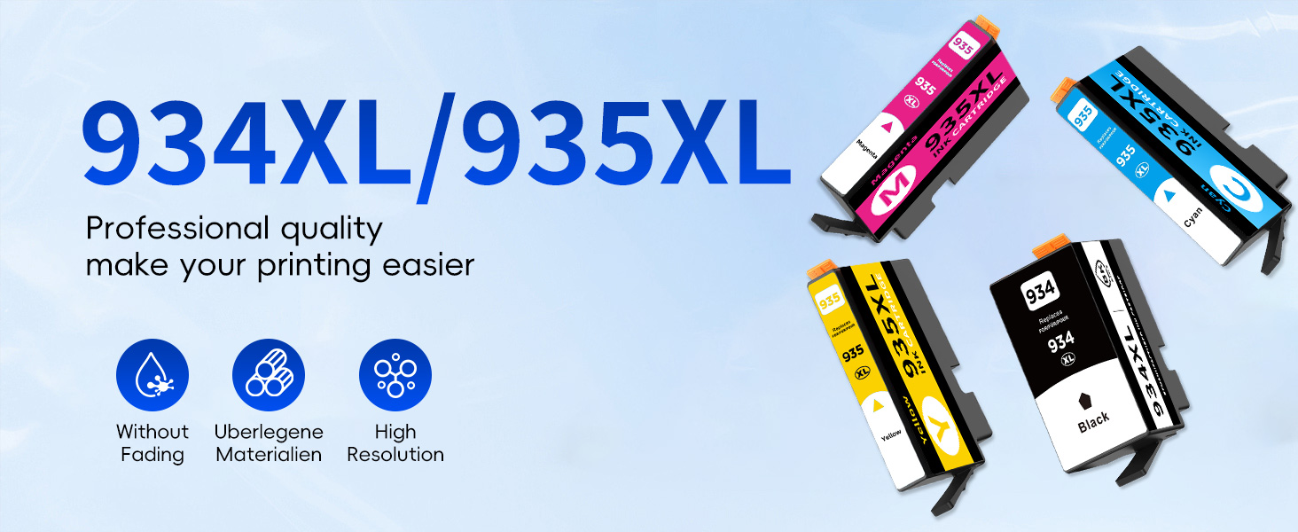 Package Contents: 4 Pack High Yield 934XL/935XL INK Cartridge Compatible Replacement for HP934XL/935XL HP934/935 934/935 XL (1 Black + 1 Cyan+1 Magenta+1 Yellow)
