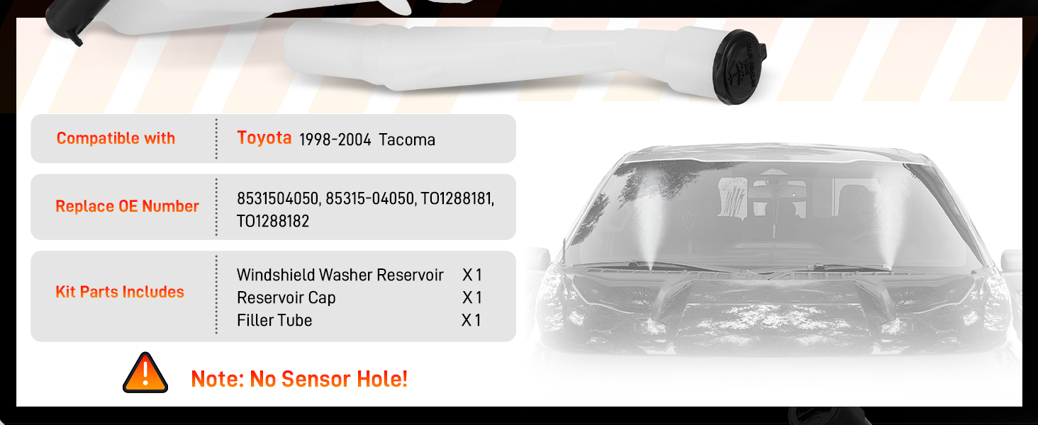 8531504050 Windshield Washer Reservoir with Cap Without Sensor Hole in Bottom Compatible with Toyota Tacoma 1998-2004, Washer Tank Replaces# TO1288181 TO1288182 85315-04050