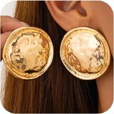 Chunky Large Hammered Earrings: Make a funky vibe with these large hammered round earrings. Their exaggerated geometric shape and chunky hammered texture give off a cool vintage vibe. These big dangly earrings are your go-to for any occasion look