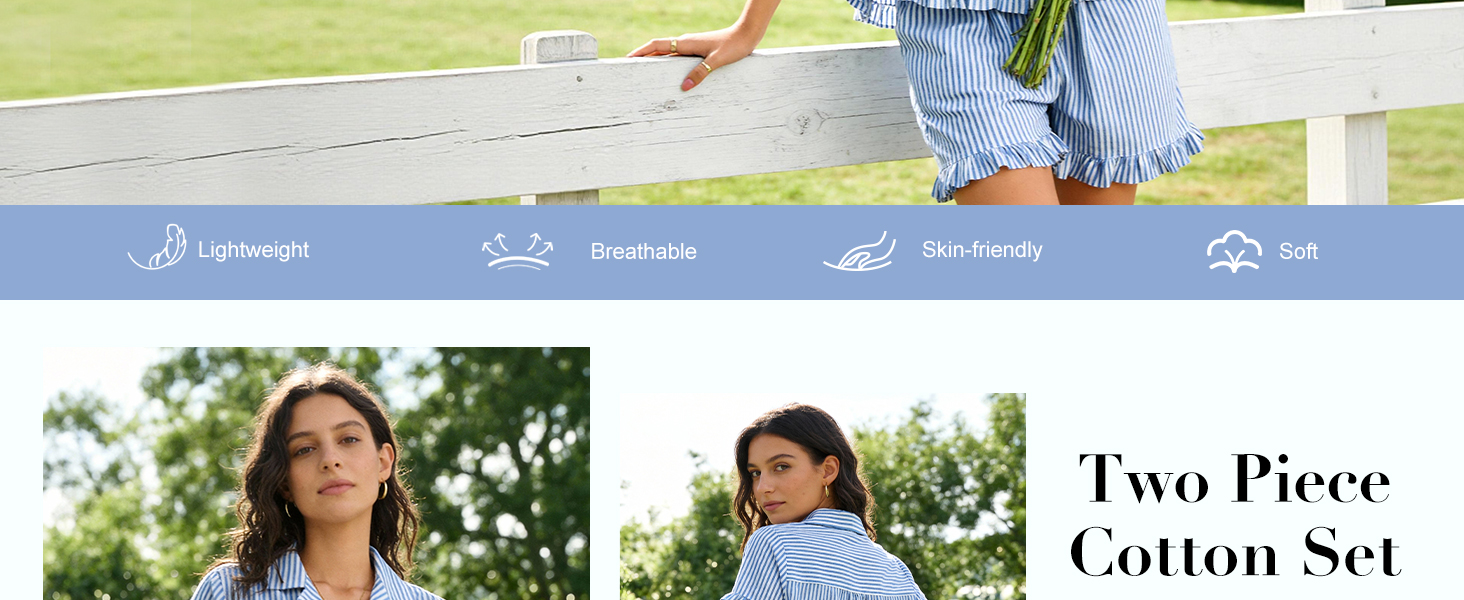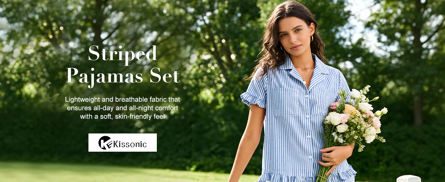 Material: This womens striped pajamas set is crafted from 100% cotton, offering a lightweight and breathable fabric that ensures all-day and all-night comfort with a soft, skin-friendly feel