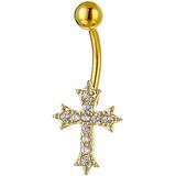 14G Rhinestone Cross Belly Button Rings for Women Sparkling CZ Paved Cross Navel Rings Belly Piercing Barbell Belly Piercing Jewelry Gold Silver
