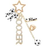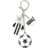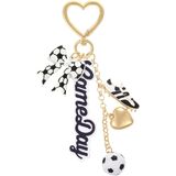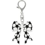 Charming Soccer Theme Bag Charm - Display your love for football with this delightful combination of a heart charm and bow-shaped soccer ball pendant. Perfect for adorning bags, keys, and sports accessories.