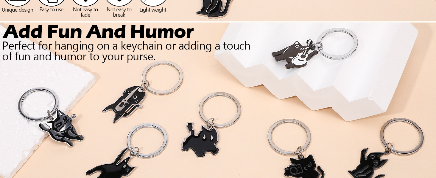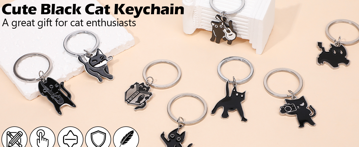 【ADORABLE 8-PACK DESIGN】This set of cute cat keychains features 8 unique kawaii black cat charms, perfect for cat lovers who enjoy mixing and matching. Each charm has a playful pose and expressive details, adding a dose of personality to your keys, backpack, or purse instantly