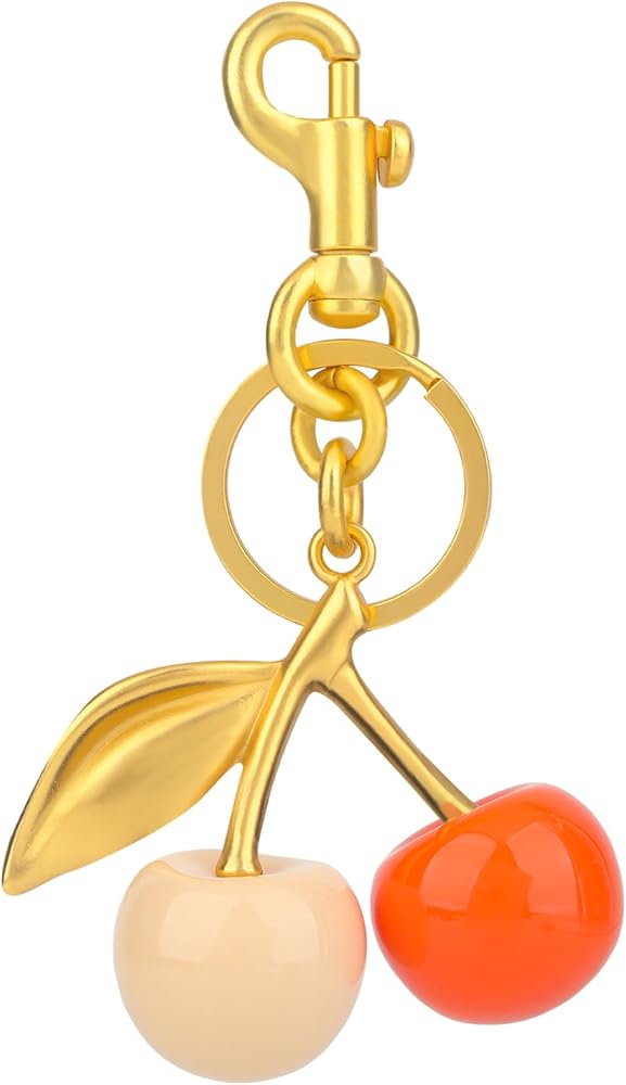 This cute cherry keychain comes with a sturdy gold-tone metal clip that can be easily attached to your favorite bag—great for pairing with other cherry bag charms, using as a travel accessory, or displaying as home décor. Let sweetness accompany you.