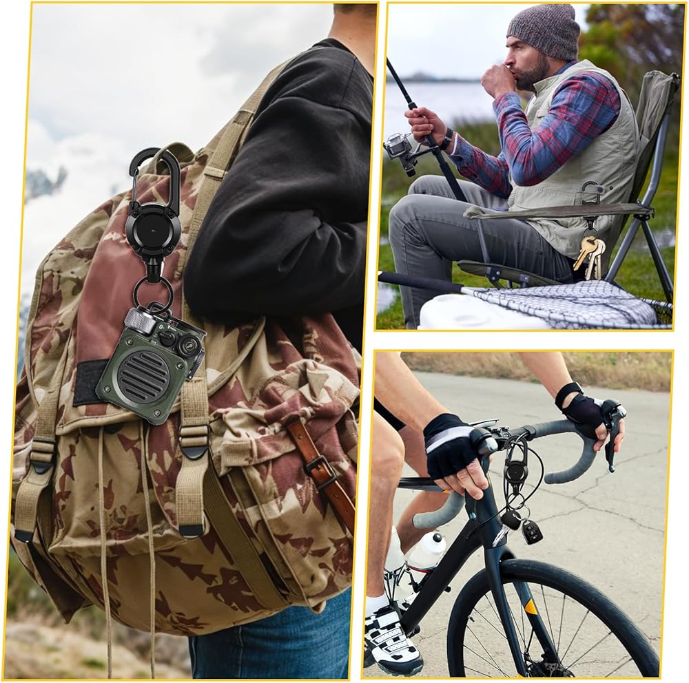These Multitool Carabiner Badge Holders, Retractable Keychain Clips, include a carabiner for attaching to belts or backpacks and a retractable cord for easy access to keys or badges. The cord extends smoothly, allowing convenient use without removing the keychain