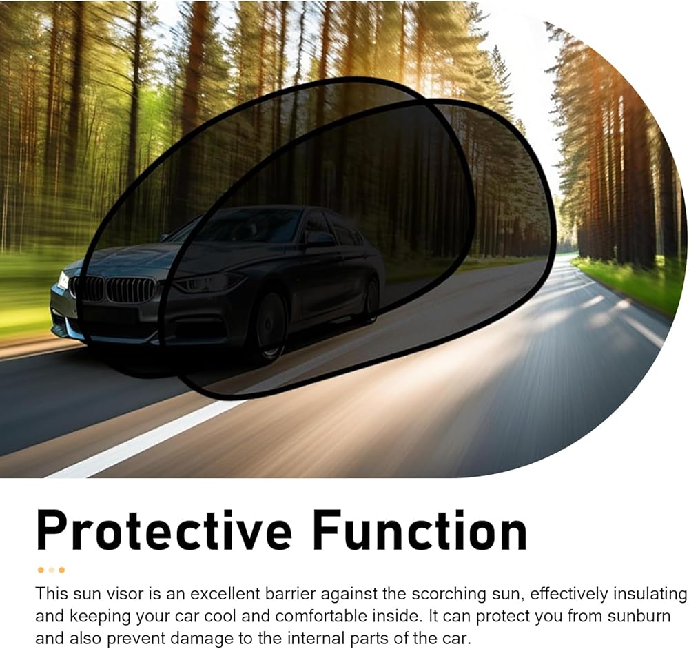 Material: The car window sunshade is made of high-quality mesh fabric. The fabric is dense and breathable, providing sun protection without obstructing the view, maintaining a clear line of sight. The fabric is flexible, scratch-resistant, and durable for long-term use.