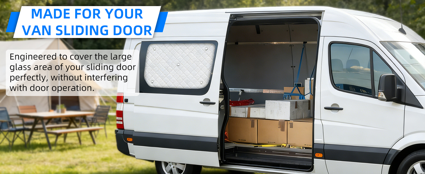 【Perfect Fit for Freightliner & Dodge Sprinter Vans】This sliding door sun shade is engineered specifically for Mercedes Sprinter 2006-2018, including NCV3 versions. The exact contour alignment provides full coverage for your Sprinter's sliding door while maintaining proper door functionality when installed.