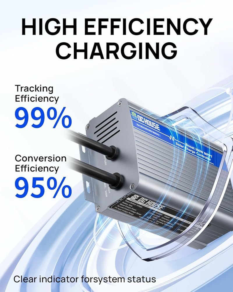 99% Efficient MPPT Technology: DC HOUSE MPPT technology is with a high conversion efficiency of 95% and peak charging efficiency up to 99%. Even when the battery is dead (at 0 volt), the controller can activate it with small current and bring it to life.