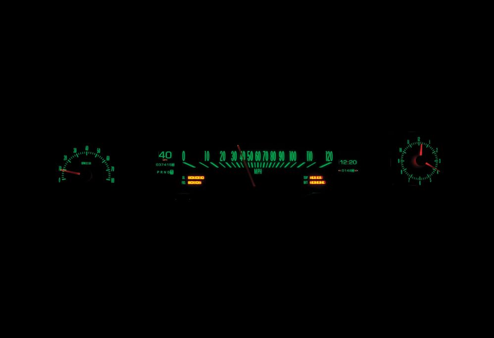 Analog Gauges: Speedometer (0-160MPH), Tachometer (0-8000rpm) and Clock