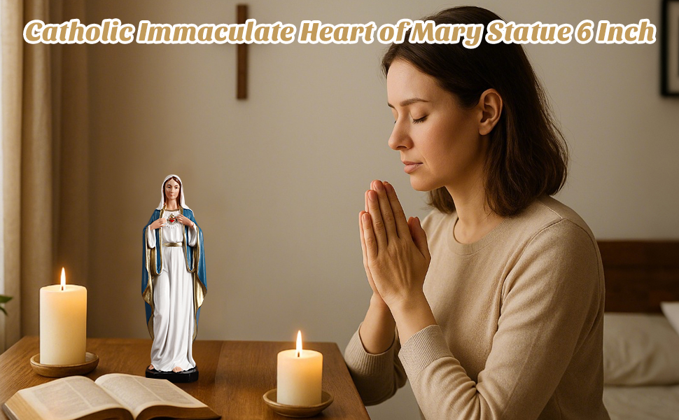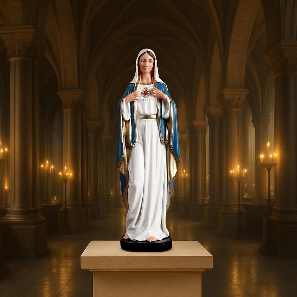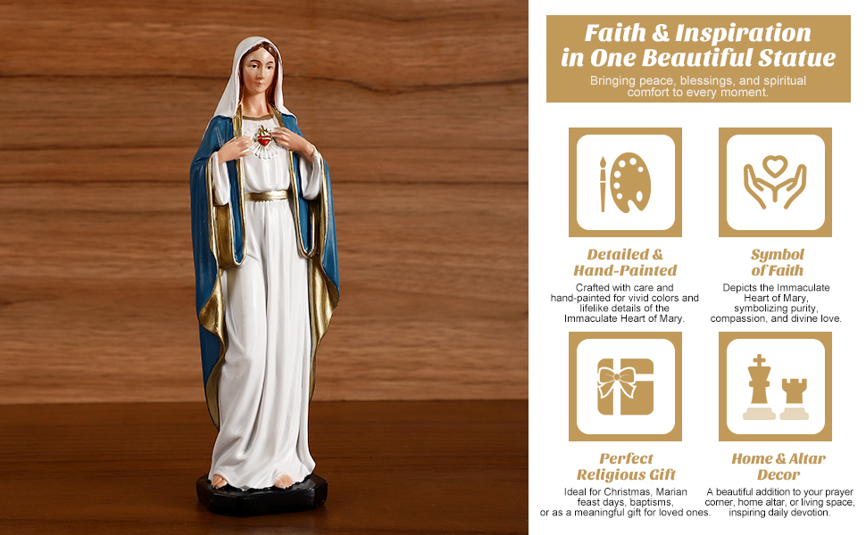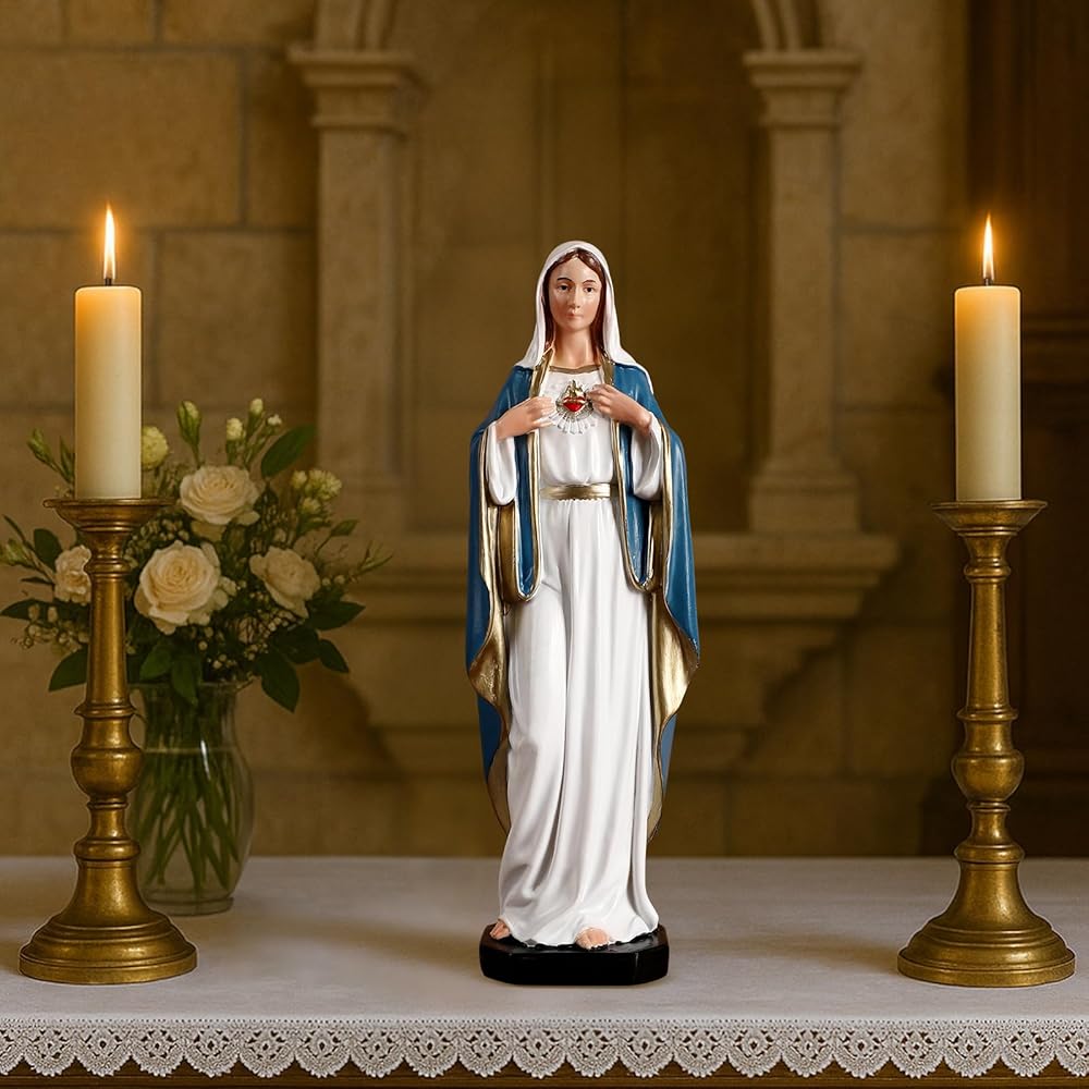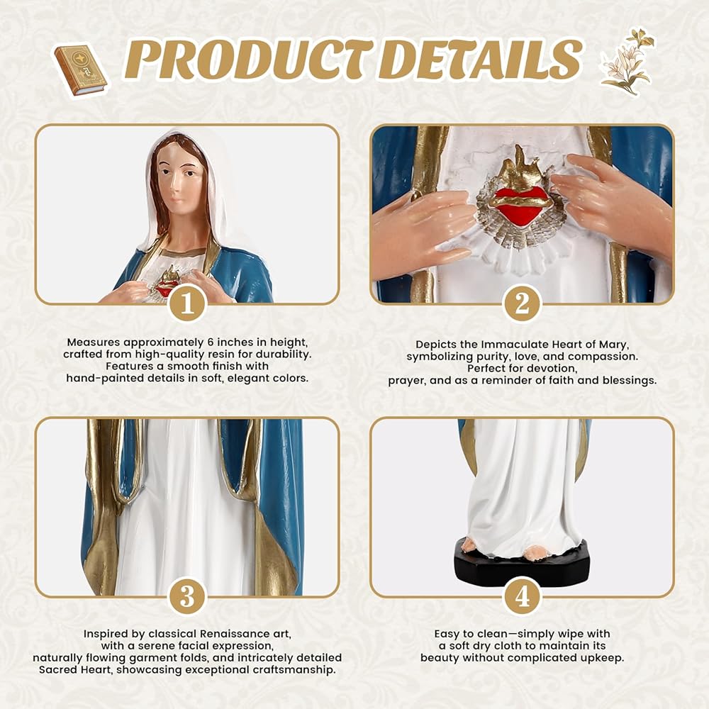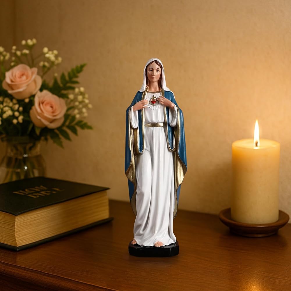 TALPGOD Immaculate Heart of Mary,6 Inch Blessed Holy Mother Virgin Mary Statue Catholic Altar Home Decor,Holy Mother Religious Gift for Mom,Catholic Art Hand Painted Renaissance Sculpture Collection