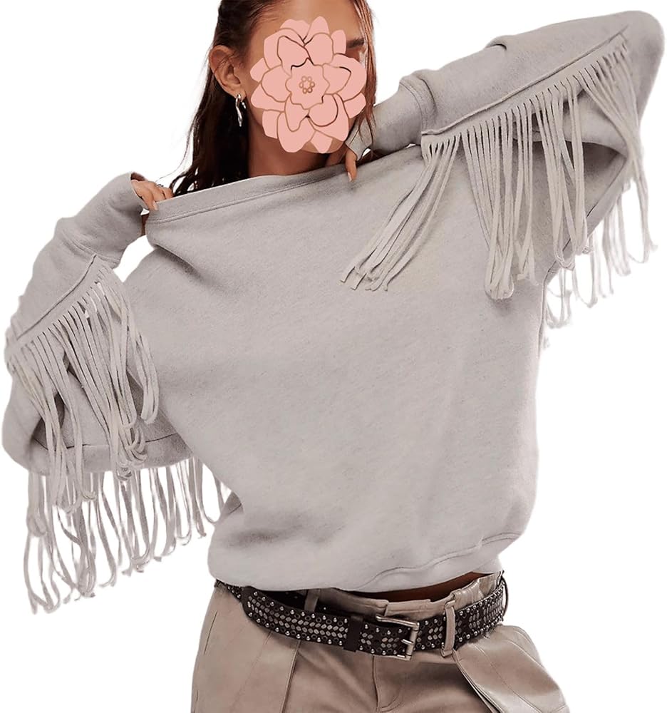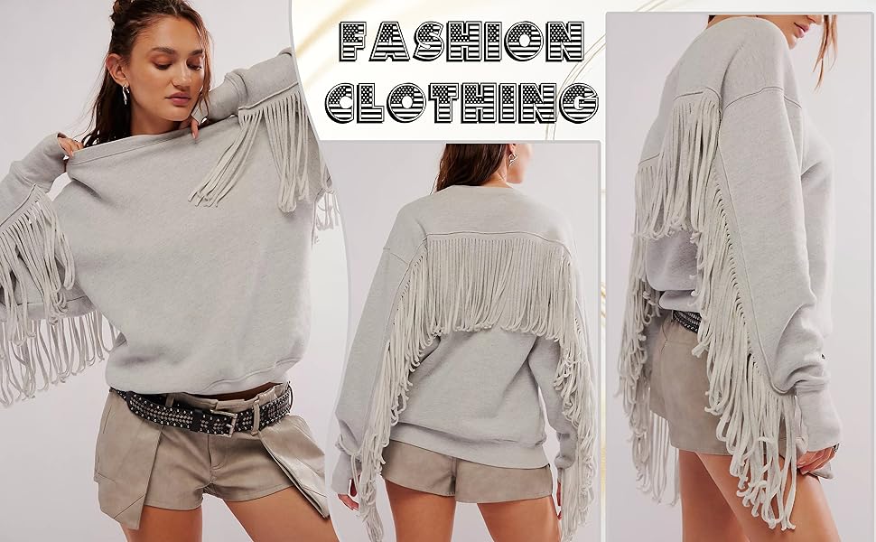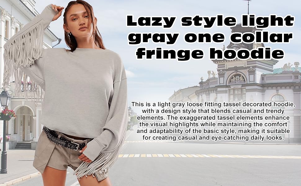 Must-Have Trendy Top: As a trendy fringe decorated top, this women's hoodie is a fashion staple, offering a cute and edgy vibe that complements various styles, making it an essential grey hoodie for fall and beyond.
