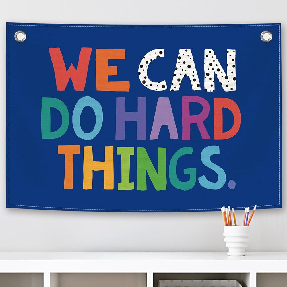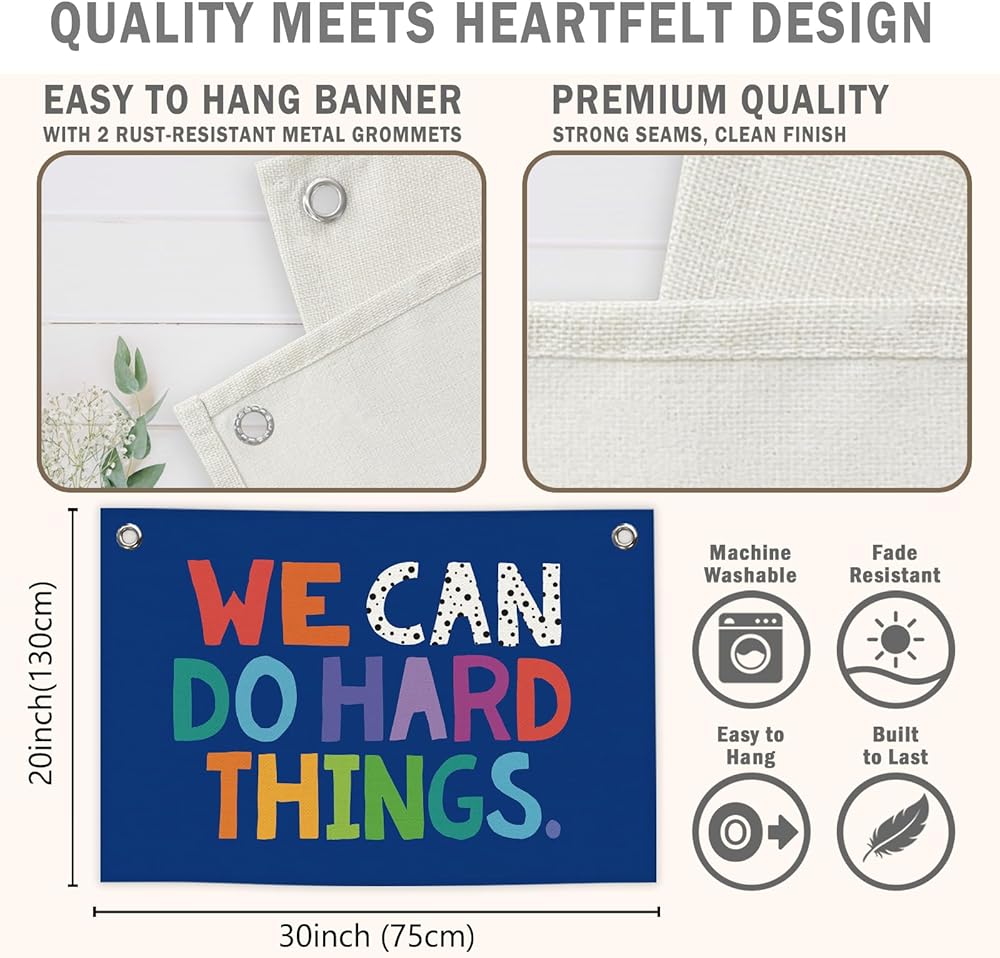 We Can Do Hard Things Kids Banner Canvas, Classroom Blue Toddler Room Decor, Inspirational Hanging Flag Sign, Nursery Wall Tapestry Art for Playroom School Counseling Office Boy Decor 20x30in