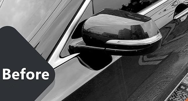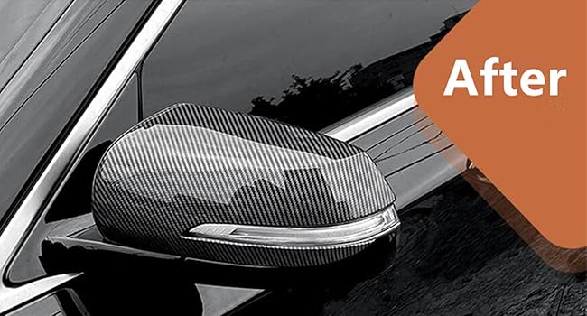 【EASY TO INSTALL】The Exterior Door Mirror Protective Cover Set's Installation is simple and convenient, without any tools. Please clean the surface before installation. There is a strong double-sided tape on the back of the product, which will not move firmly after installation. It can be easily disassembled and will not cause harm to your car.Using lighter to heat the adhesive tape slightly, the installation effect will be better.