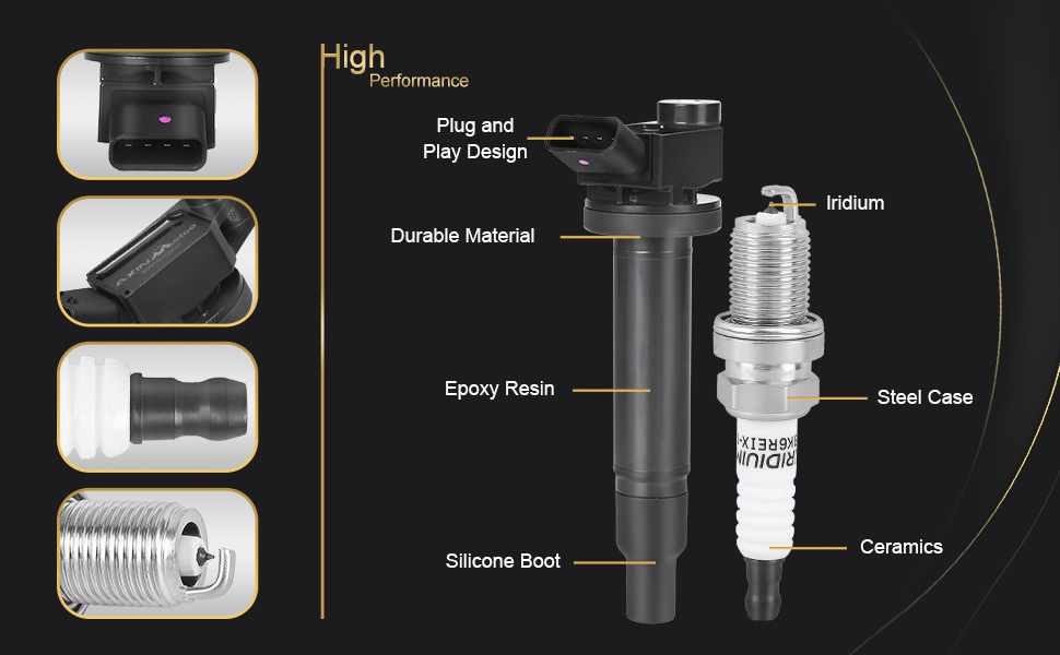 Extreme-Quality Materials - Crafted from Extreme-Quality materials, our ignition coils are built to withstand extreme temperatures and harsh conditions. they offer exceptional durability, ensuring durability and long-lasting performance, keep your engine firing at its best for years to come.