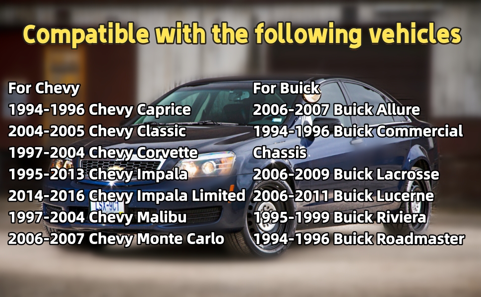 perfectly compatible with- 1994–2016 Chevy Caprice/Impala, 1994–2011 Cadillac DTS/Fleetwood, and 1994–2011 Buick Allure/Lacrosse.(See product details for a full list of compatible vehicle models).