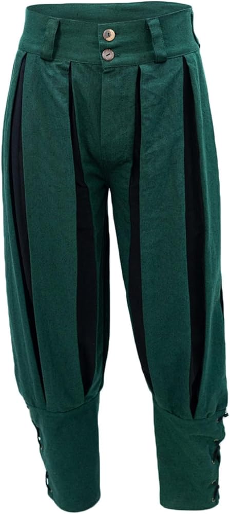 These Black Red Striped Landsknecht Pants pair the stylistic flair of the Landsknecht era with accessible simplicity and comfort. These pants feature a striking design with green and black to provide a layered look, inspired by historical depictions and samples from the Landsknecht era. Whether you're donning a doublet or a traditional jerkin, these pants effortlessly allow you to complete a Landsknecht-themed clothing set.