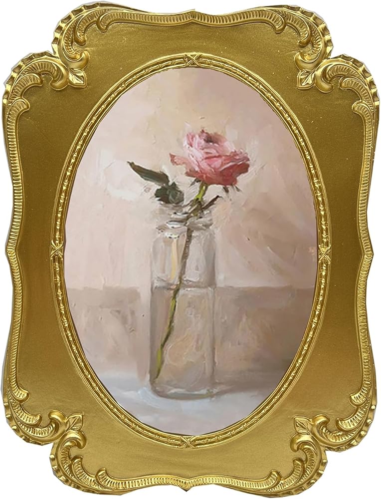 Versatile Display:Designed with hook & kickstand for both wall mounting and tabletop display. Outline border of this gold oval picture frame is 6.5x8.7 inch, perfect for 5x7 photos.