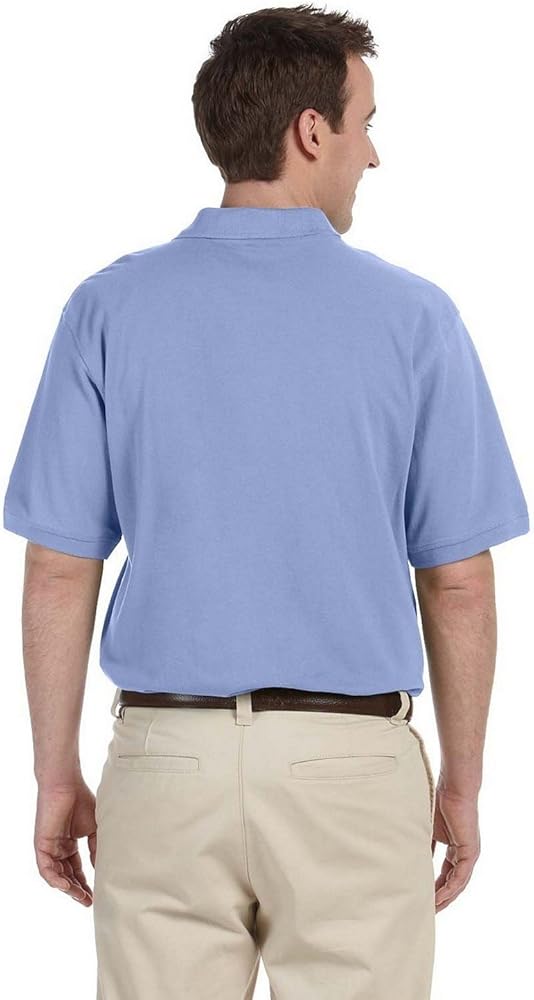 65% polyester, 35% cotton piqué; Wrinkle-resistant; Special poly/cotton blend creates soft silky hand and helps reduce shrinkage; Flat-knit collar and cuffs; Hemmed bottom with side vents; Three-button placket; Set-in sleeves; Side seamed;