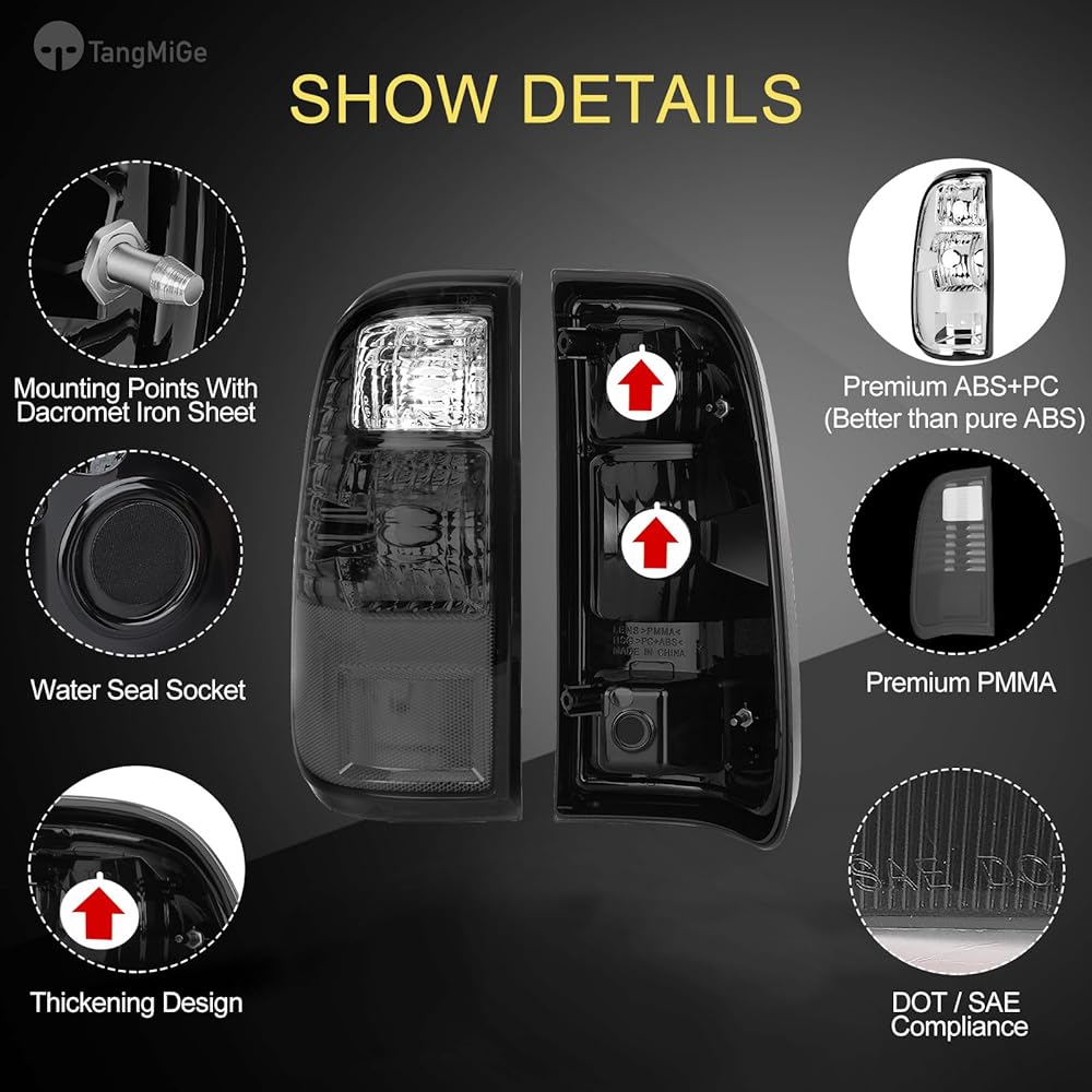 【 DOT / SAE COMPLIANCE 】— Replaces Original (OE) Part: Left-BC3Z13405A; Right-BC3Z13404A. ABPA Partslink No.: Left-FO2800208; Right-FO2801208. These Tail Lights will not only improve the appearance of your car, but also conform the strict guidelines of DOT and SAE compliant.