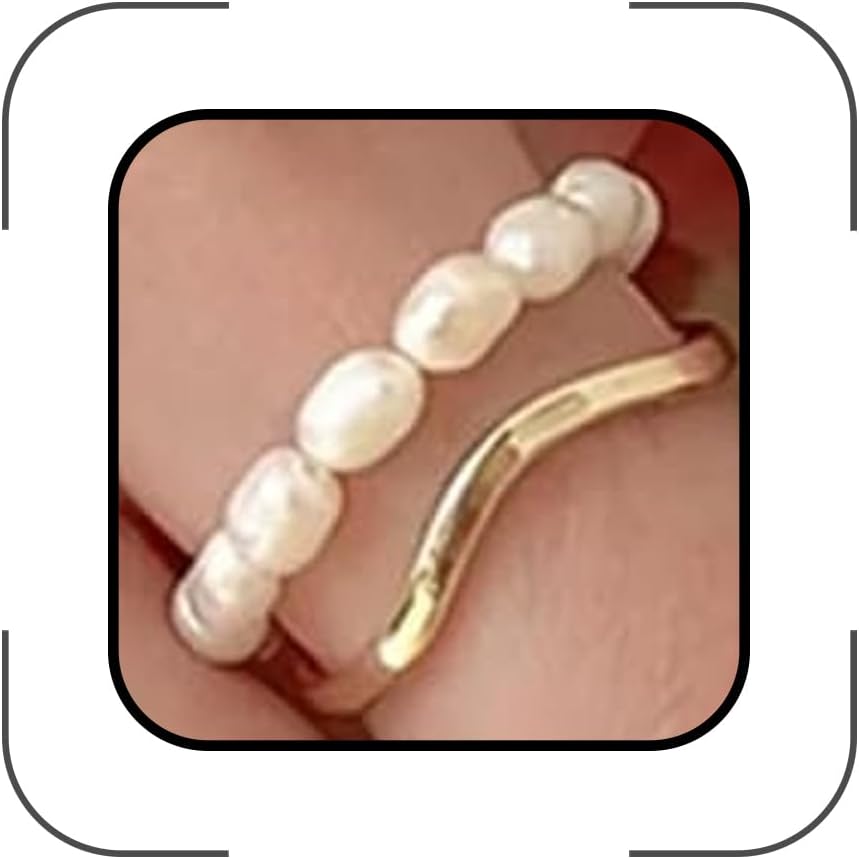 High Quality—Crafted from high-quality alloy, these rings are built to shine without compromising on style. The faux pearls add a touch of beauty. The dainty 14k gold finish and oval rice bead details give each ring a vintage, cute aesthetic that's sure to catch everyone's eye. Whether you're looking for a simple everyday ring or something special for a night out, our adjustable freshwater pearls open rings for women have got you covere