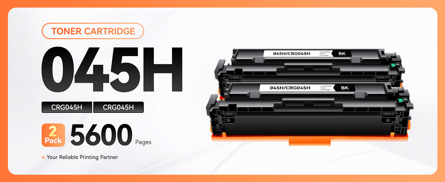 Yield & Version: 2,800 pages for 045H Black toner cartridge (A4, 5% Coverage), High Yield Version 045H toner Cartridges.