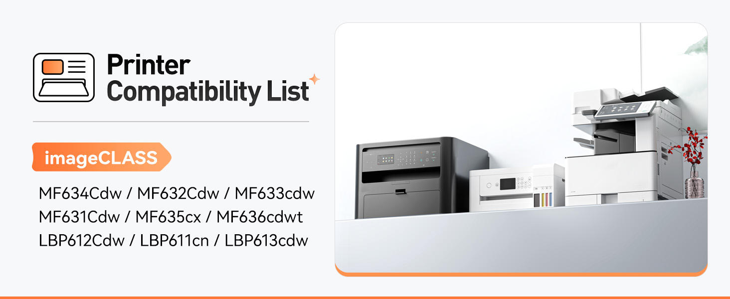 Compatible Printers: Compatible with Canon Color imageCLASS MF634Cdw, MF632Cdw, MF633cdw, MF631Cdw, MF635cx, MF636cdwt, LBP612Cdw, LBP611cn, LBP613cdw Toner Laser Printer.