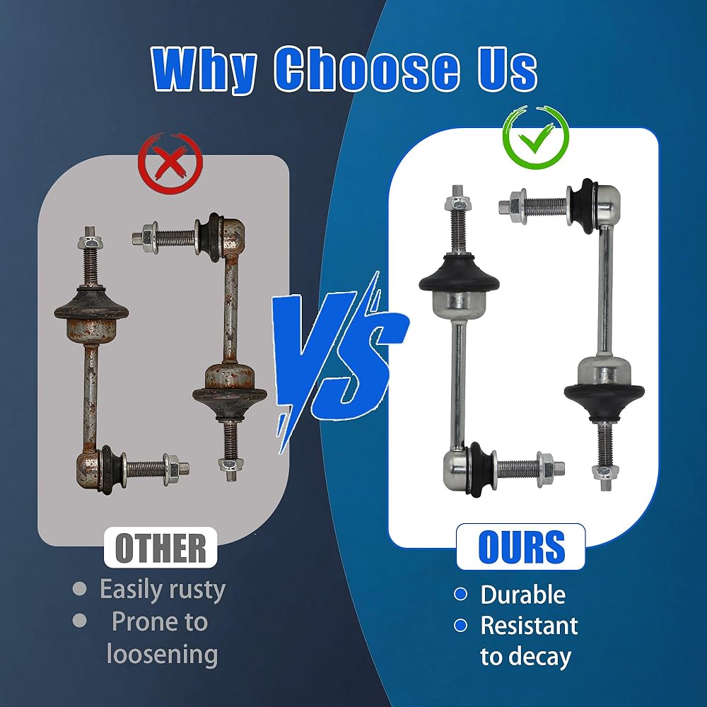 ✨【Enhanced Safety & 1-Year Warranty】 Our front stabilizer bar link Improves vehicle handling and steering responsiveness, reducing uneven tire wear,Mtrcse backs this suspension kit with a 1-year warranty, offering peace of mind against manufacturing defects—ideal for addressing worn suspension signs (loose steering, visible damage, tire wear).