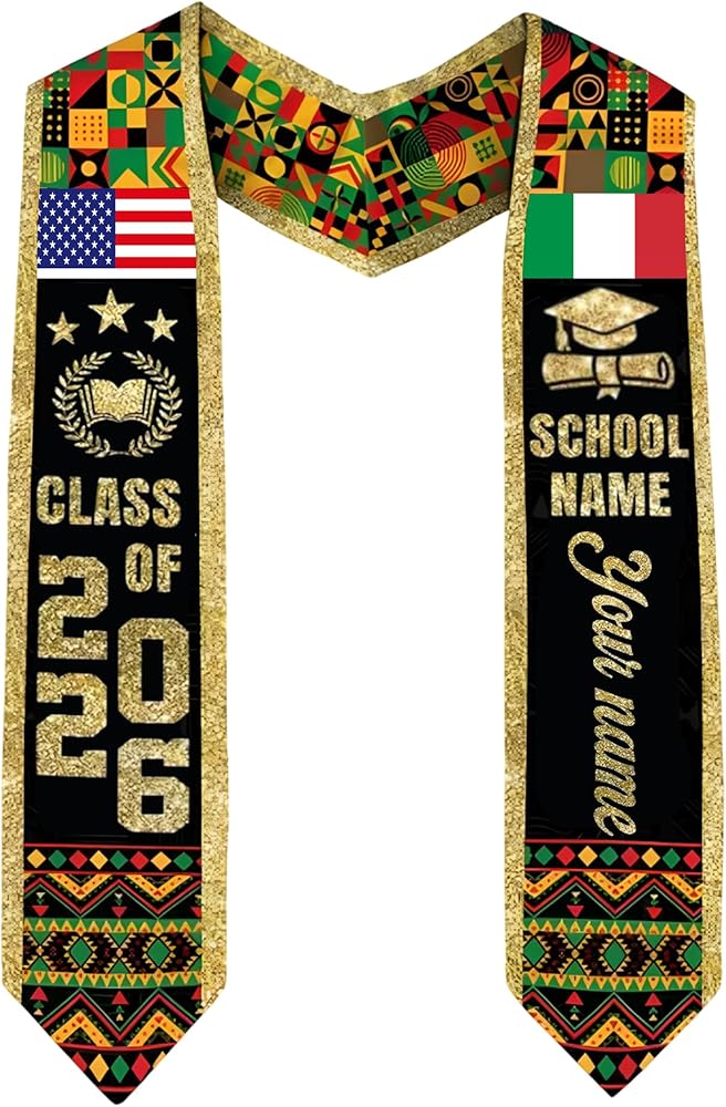 Italian Graduation Stole: Designed with both Italian Flag and USA Flag, perfect for graduates honoring their roots and American journey. These personalized graduation stoles would make wonderful graduation presents for your friends, daughter, son, italian stole, graduation gifts for girls, italian sash, italian graduation sash, italian graduate stole, custom graduation stole, american graduation stole.