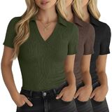 3 Pack women's short sleeve collared t shirts