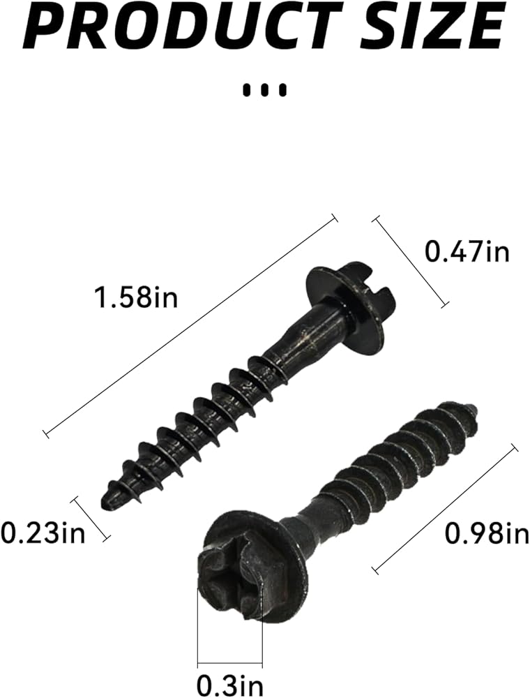 Air Filter Box Screw: The air filter housing retaining bolts have a Phillips design that fits a Phillips screwdriver. They can be used to hold the air filter in place and ensure that the air filter effectively filters the air entering the engine. The bolts are securely mounted to the vehicle, thus preventing the air filter from loosening or falling off while driving.