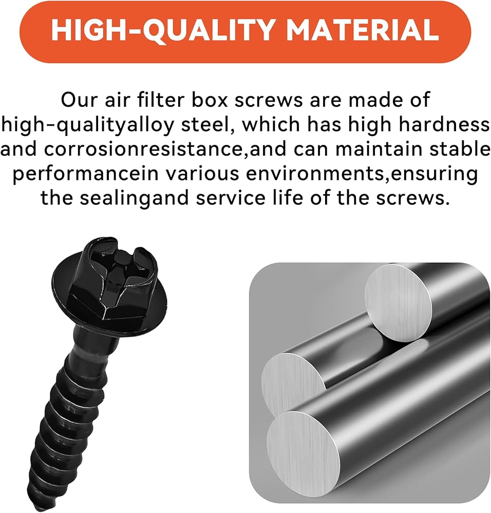 Easy to Replace: This air filter housing retaining bolt is simple and easy to use. First, you should open the hood of your car and locate the air filter. Next, you need to use a screwdriver or wrench to gently loosen and remove the old bolt. Finally, you just need to align the new bolt to the appropriate location and tighten it to complete the replacement for use.