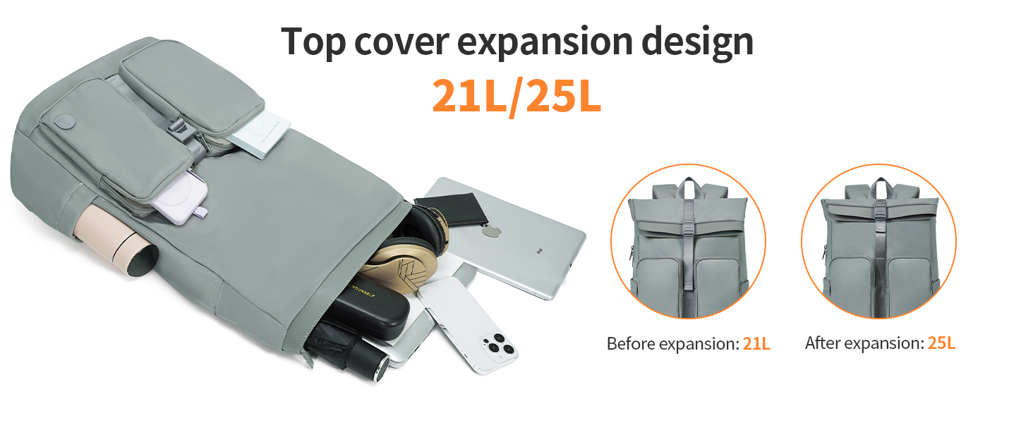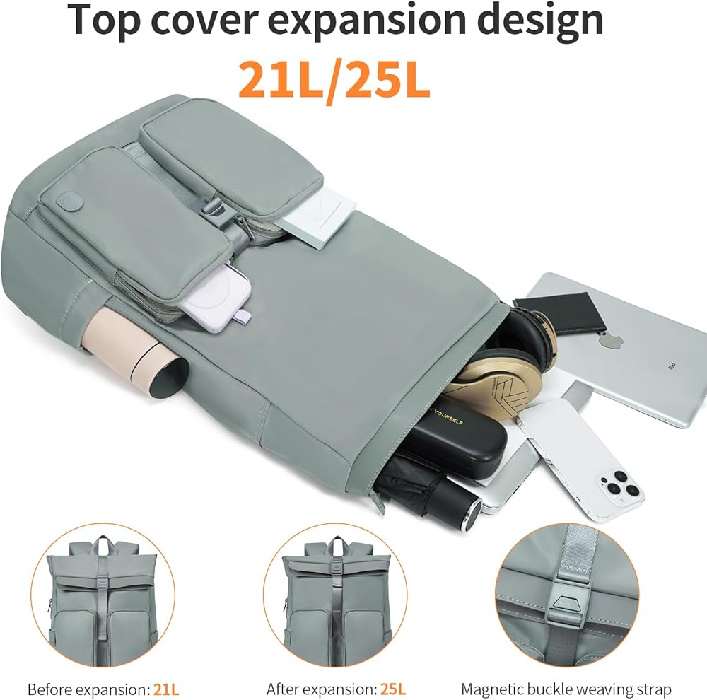 【VERSATILE & EXPANDABLE LAPTOP BACKPACK】AJI laptop backpack features dual-zipper side access for quick retrieval without full opening, plus a wide side opening design for enhanced visibility. The expandable top flap boosts capacity from 21L to 25L, ideal for extra gear. Perfect for travel, work, or daily commutes—sleek, adaptable, and effortlessly organized.
