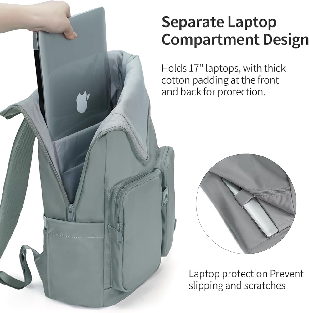 【MULTI-FUNCTIONAL STORAGE SYSTEM】Equipped with a dedicated shock-absorbing compartment, this 17-inch travel backpack ensures your device is protected from bumps and drops. With 10 organized pockets, including side pockets for umbrellas and water bottles, you can keep your travel or work essentials neatly arranged.