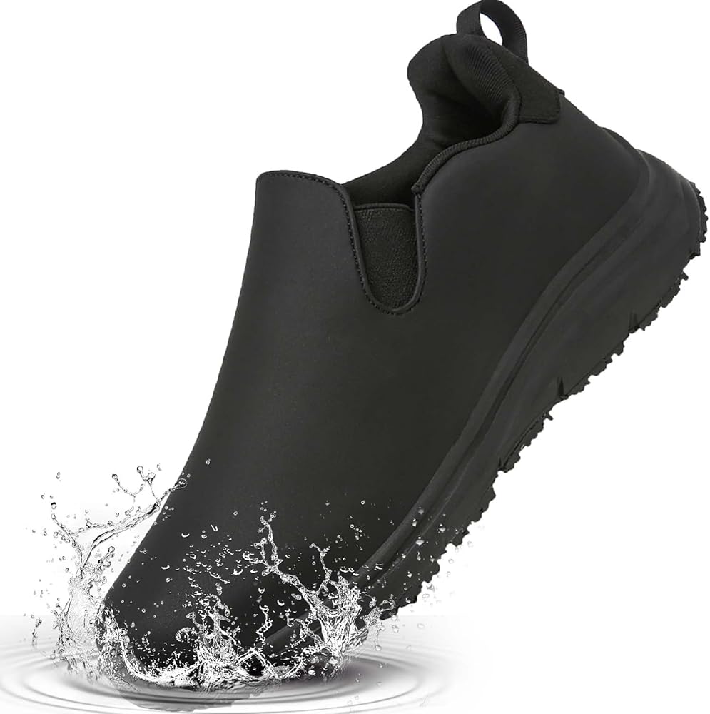 Non Slip Waterproof Shoes for Women Work Safety Slip Resistant Oil lightweight Comfortable Slip On Chef Kitchen Restaurant Food Service zapatos de trabajo para mujere antideslizante para cocina Black