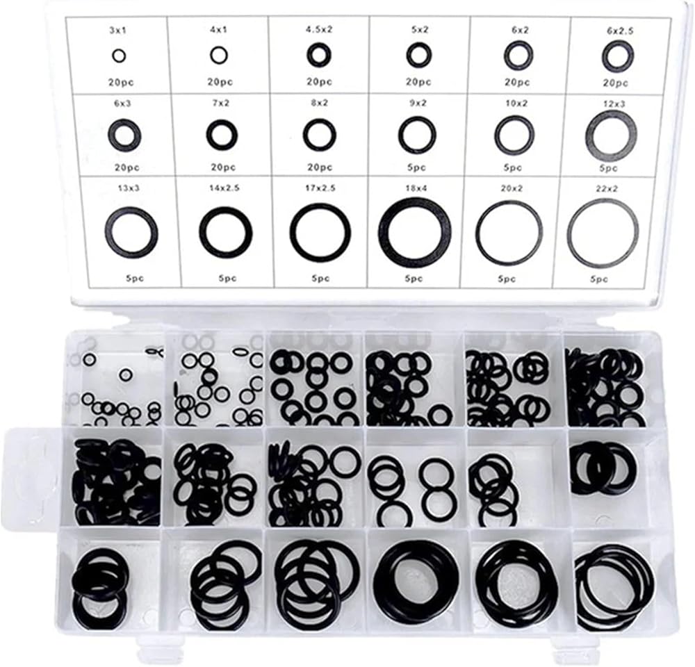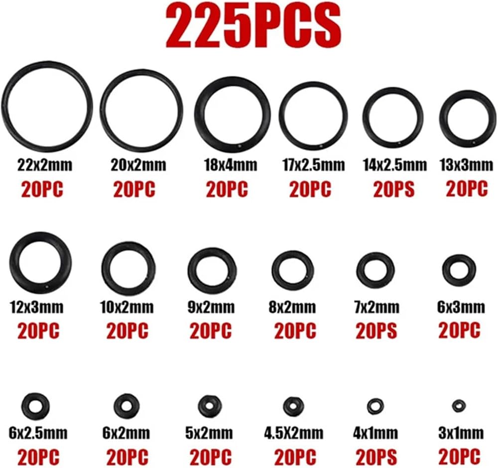 225PCS Rubber O-Ring Oil Resistance O-Ring Washer Gasket Seals Watertightness Assortment Different Size With Plastic Box Kit Set