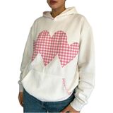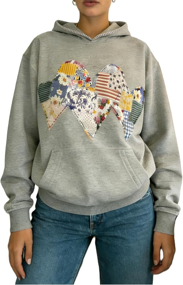 Trendy vintage graphic hoodies for teen girls, 3 hearts custom patchwork sweatshirts, star print hooded pullover tops, 3 stars oversized sweat shirts, cute flower patchwork spring hoodie tops for women, teen girl aesthetic star baggy sweatshirts y2k streetwear.