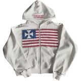 Y2K ZIP-UP DESIGN: Front zipper closure for adjustable style & easy layering. Features edgy retro graphics and embroidered hood details, perfect for grunge/emo daily wear.