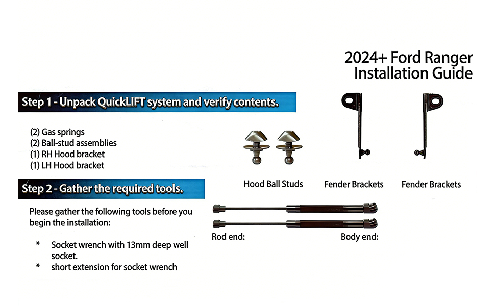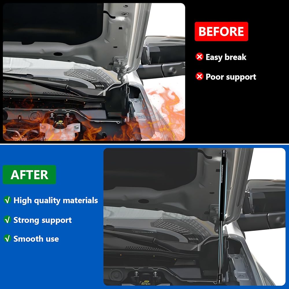APPLICABLE MODELS: Designed specifically for Ford Ranger 2024 2025 2026, these hood struts replace the factory prop rod for a seamless upgrade, you'll find it very convenient and effortless to open or close the engine compartment