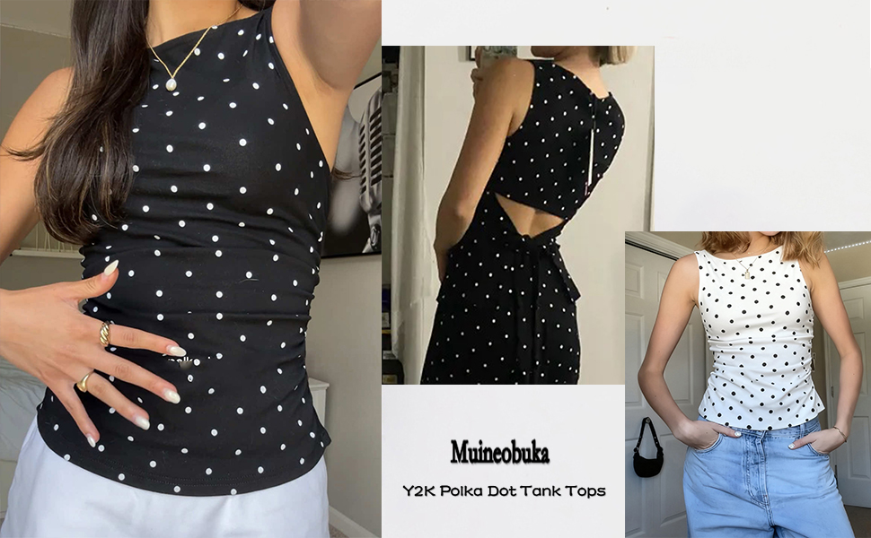 Material:Vintage polka dot tank tops for women, cute polka dot tie up back sleeveless top is made of polyester, soft, stretchy, skin-friendly, comfortable and breathable to wear