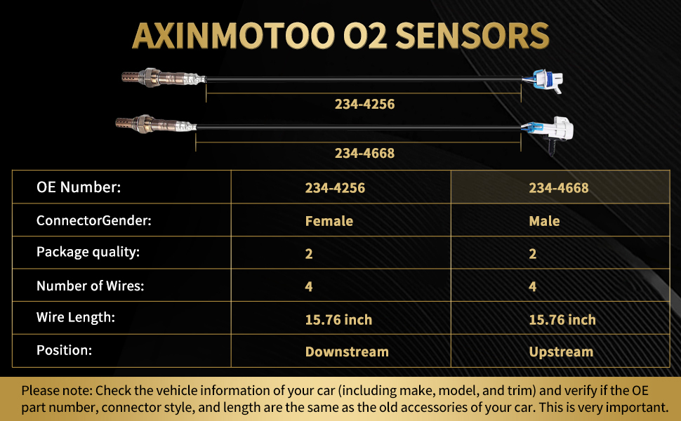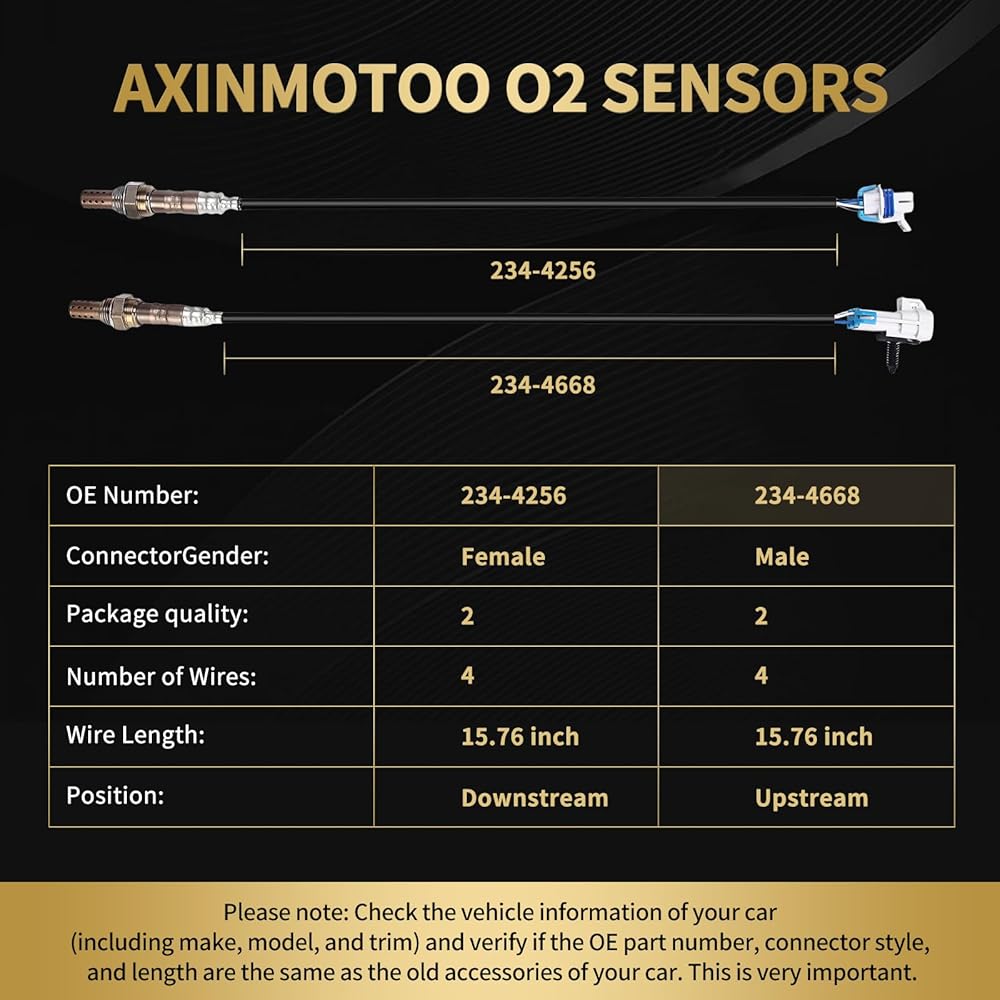 Precision performance - AXINMOTOO automotive replacement oxygen sensors adopt advanced sensing technology, whose every oxygen sensor meets OE standards. It can accurately and quickly transmit oxygen content information back to the vehicle control system, and also improve the overall fuel economy by 5-15%. For better performance, we recommend replacing the O2 sensors every 50000–60000 miles.