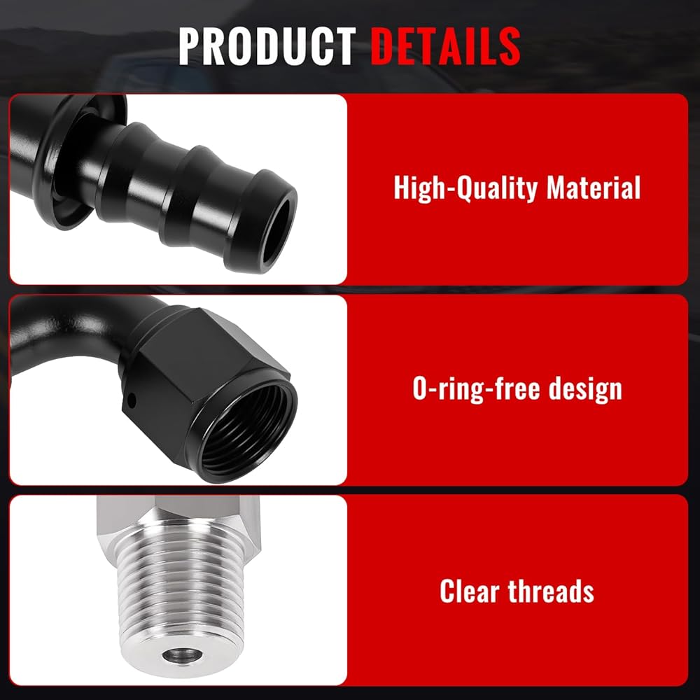 Strong Sealing & Leak-Free: The thread of upper heater hose connector replacement kit size is 1/2-14 NPT and 10AN, equipped with sealing tape, which reduces the risk of leakage and ensures safe and long-term sealing, effectively preventing coolant leakage and improving the stability and service life of the engine cooling system.