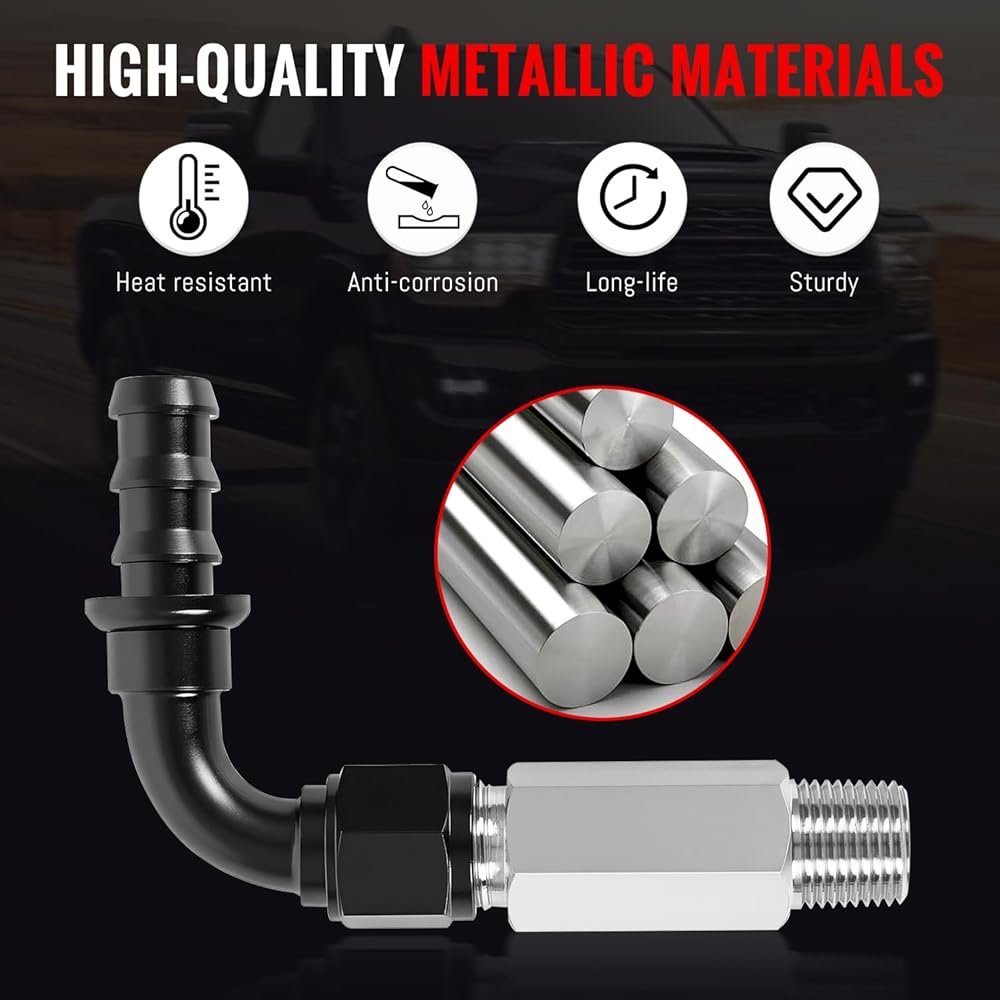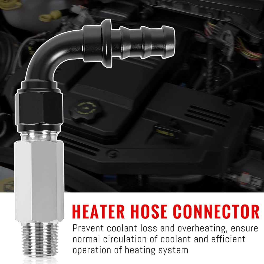 Package Included: The heater hose fitting kit includes 1PCS stainless steel connecting pipe,1PCS 90°AN10 Push Lock Fitting,1PCS clamp,1PCS PTFE Sealing tape.Including all the components required for worry free installation, without modification, can be installed directly, and the operation is simple and fast.