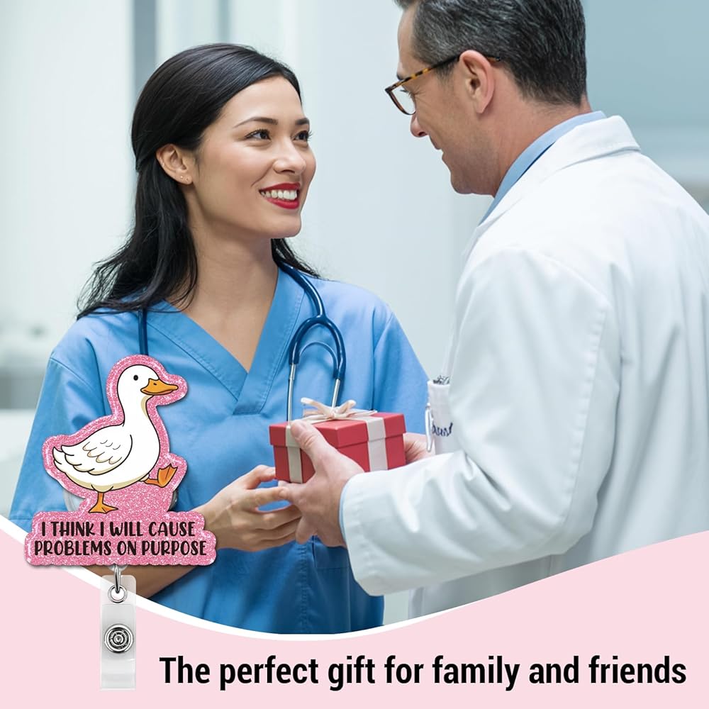 Cute Duck Badge Reel, I Think I Will Cause Problems On Purpose Retractable Badge Holder Funny Name Tag ID Card Clip for Nurse Nursing Student Doctor